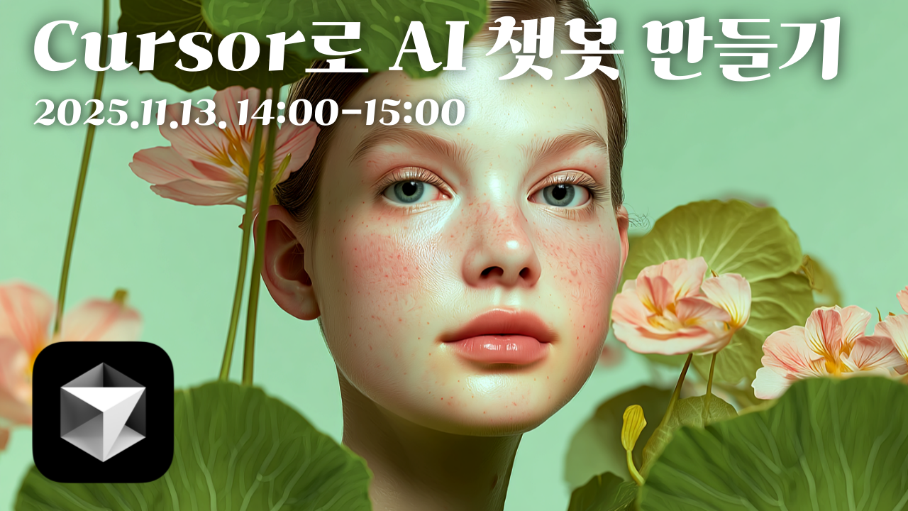 ◼ 날짜: 2025년 11월 13일(목) ◼ 시간: 오후 2시-3시 ◼ 주제: Cursor로 AI 챗봇 만들기 AI 코딩으로 이제 디자이너도 개발을 병행하는 풀스텍 디자이너의 시대가 되었다. AI 코딩의 대표적인 도구인 커서를 활용해서 AI 챗봇 만드는 작업을 통해 커서의 활용법과 활용 가치를 알아보자.